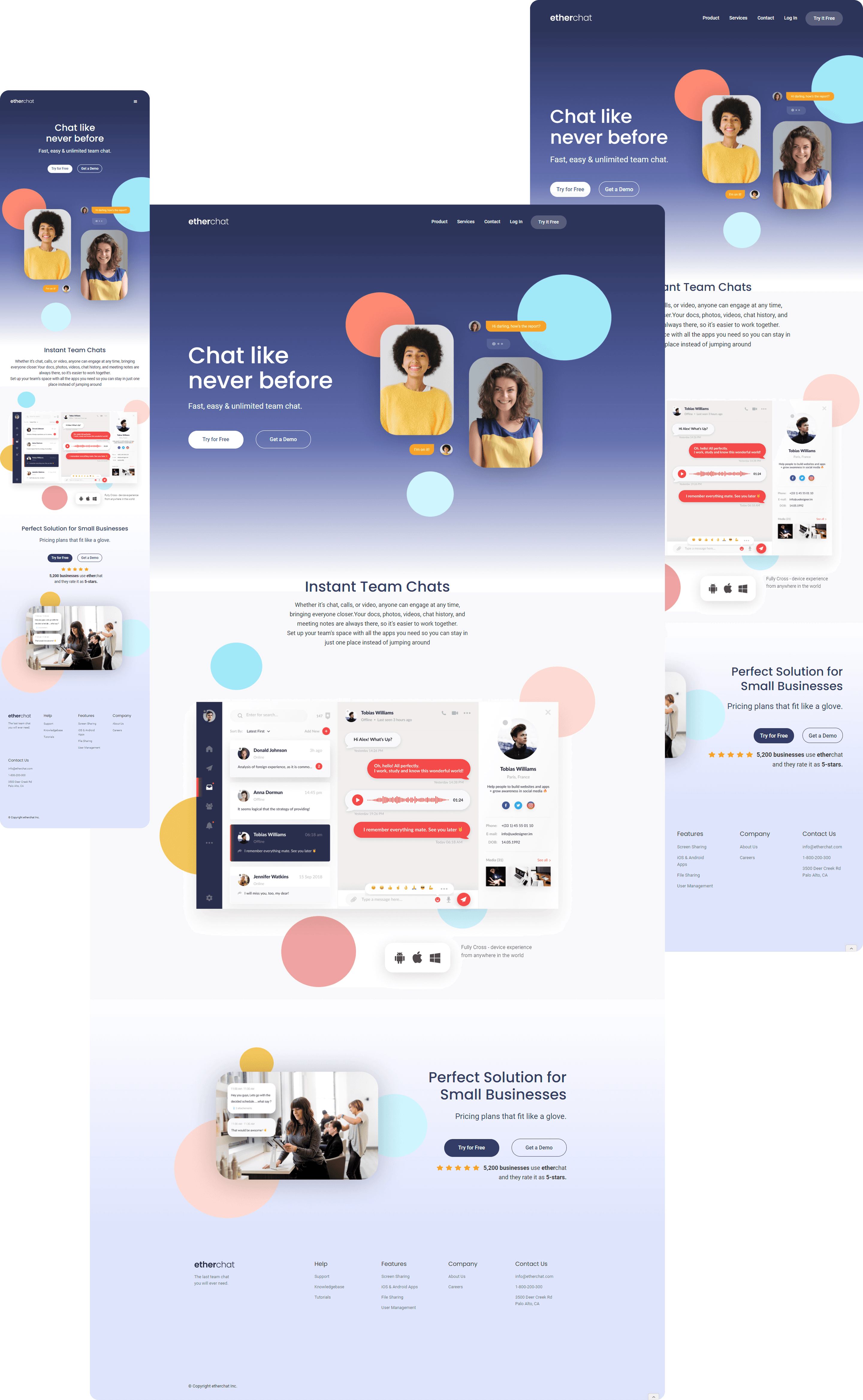 Ether Chat is an experimental proof of concept (POC) envisioning a fully responsive homepage for a chat-native application. It highlights the application's unique value propositions for users. The goal was to leverage a widely adopted no-code platform—in this case, Webflow—to both learn the tool and explore the capabilities and limitations of no-code solutions.